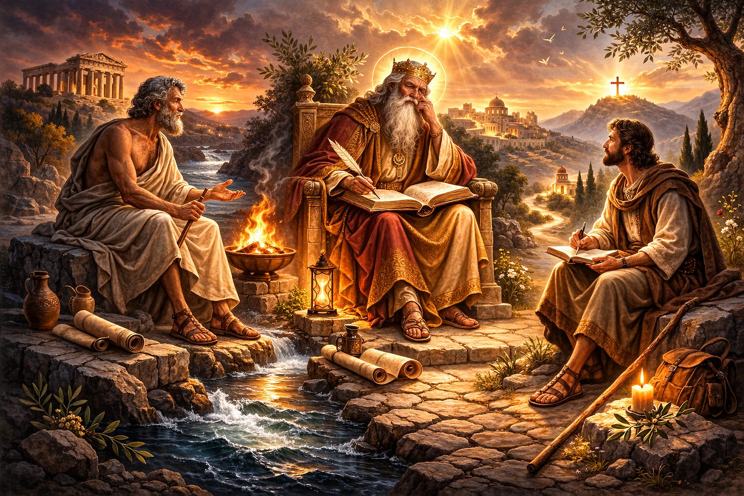 Εγώ, που δεν είμαι ούτε φιλόσοφος ούτε προφήτης, ούτε σοφός ούτε βασιλιάς — μόνο ένας άνθρωπος με καρδιά που καίει — ήμουν εκεί. Άκουσα τον Ηράκλειτο να μιλά για το ποτάμι. Είδα το βλέμμα του Εκκλησιαστή να χάνεται στον ορίζοντα του καιρού. Και μέσα μου γεννήθηκε μια ερώτηση. Όχι για το τι είναι αλήθεια. Αλλά για το πού κατοικεί ο Θεός.